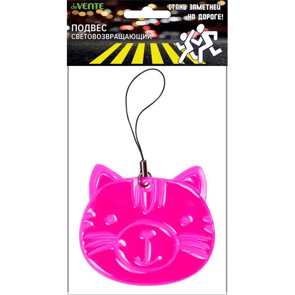 Подвес виниловый "deVENTE. Котик" 70x70 мм, световозвращающий розовый, в пластиковом пакете с подвесом