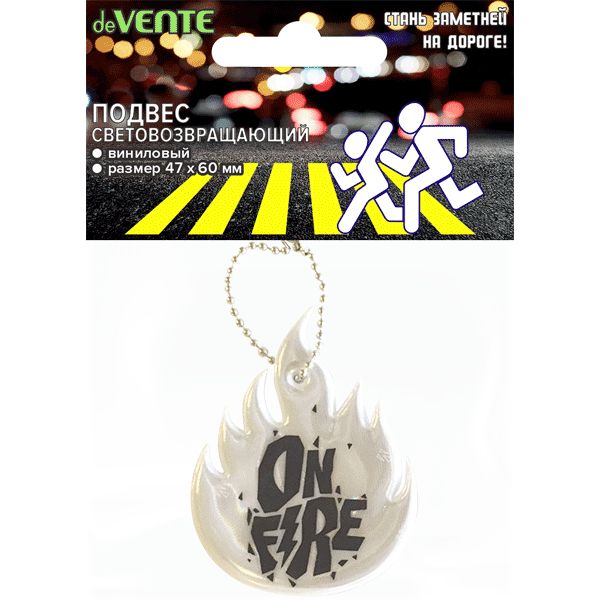 Подвес виниловый "deVENTE. On fire" 47x60 мм, световозвращающий белый, в пластиковом пакете с подвесом