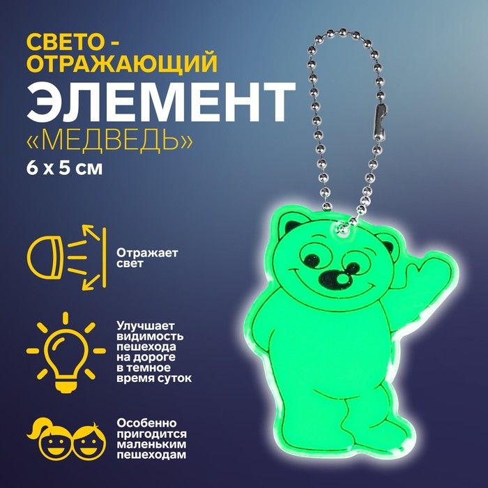 Брелок светоотражающий Медведь 60х50мм ассорти Арт Узор 2610499