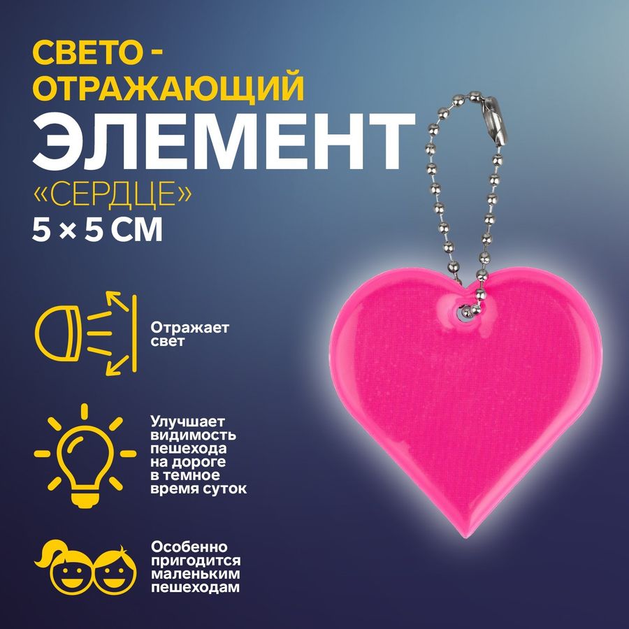 Брелок светоотражающий Cердце 50х50мм ассорти Арт Узор 1274462