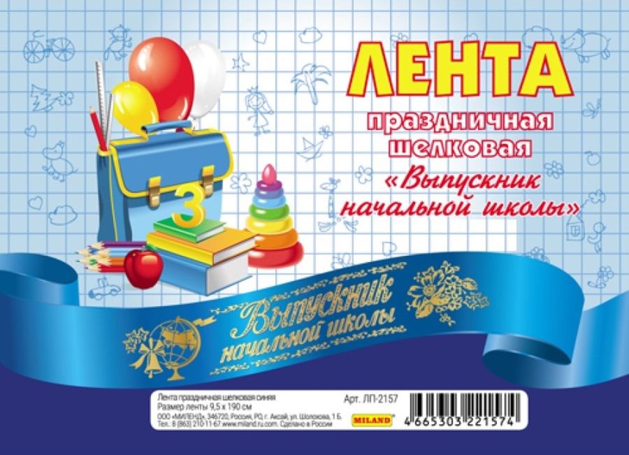 ЛП-2157 Лента Выпускник начальной школы шелковая синяя 1,9м цена за 1шт