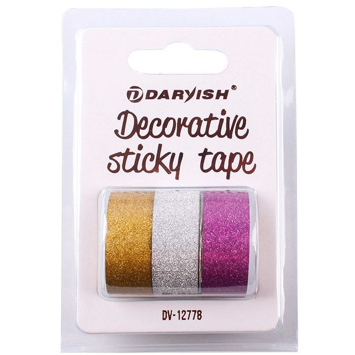 лента для декора клейкая 15мм*3м набор 3шт с блестками DV-12778
