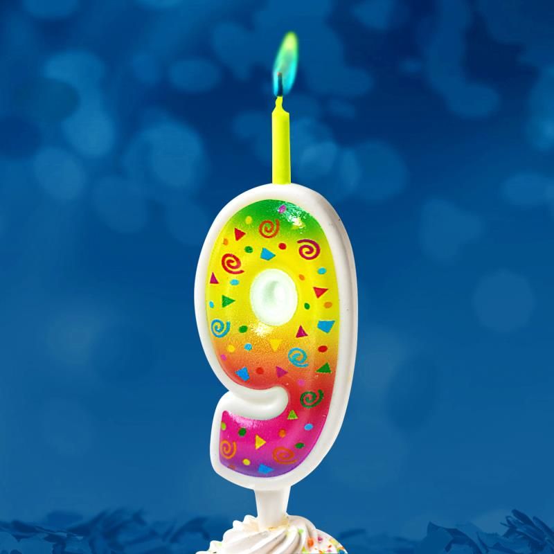 5309 Свеча праздничная цифра 9 цветное пламя