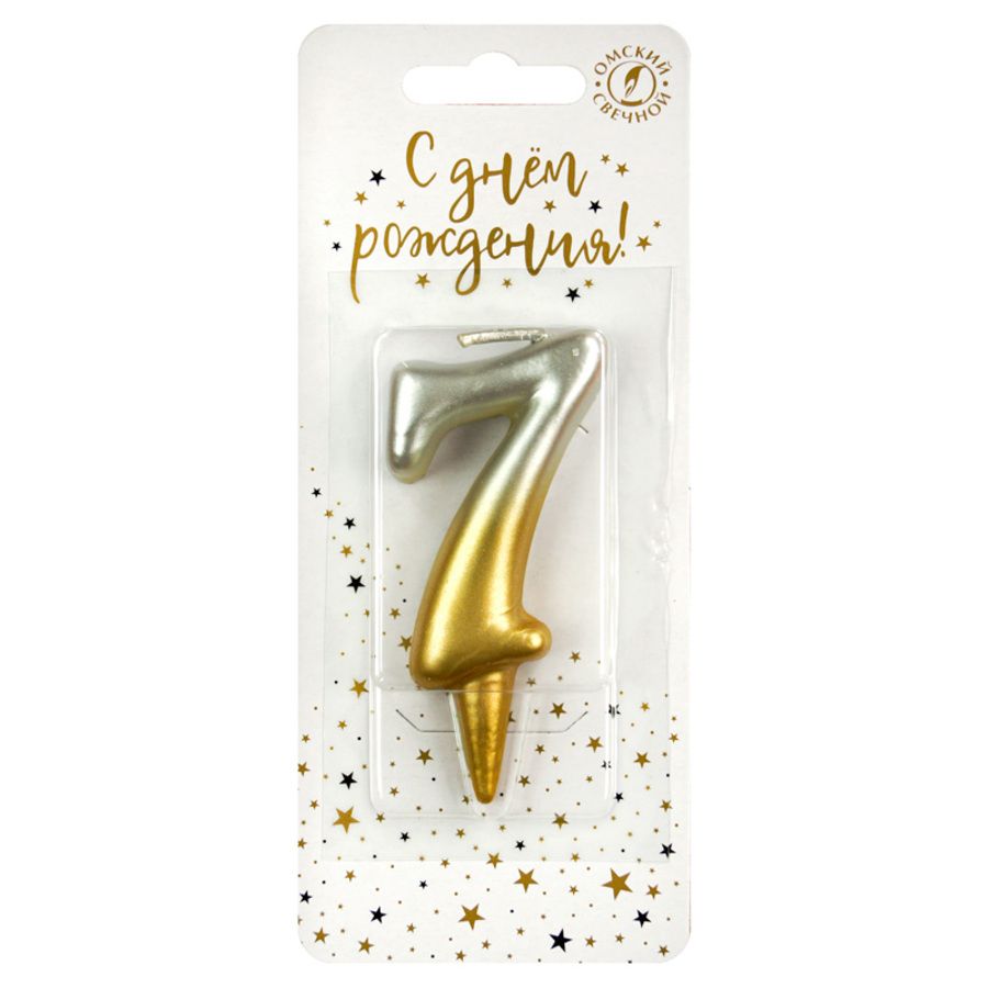 4467 Свеча праздничная цифра 7 Золото/Серебро 7,8см