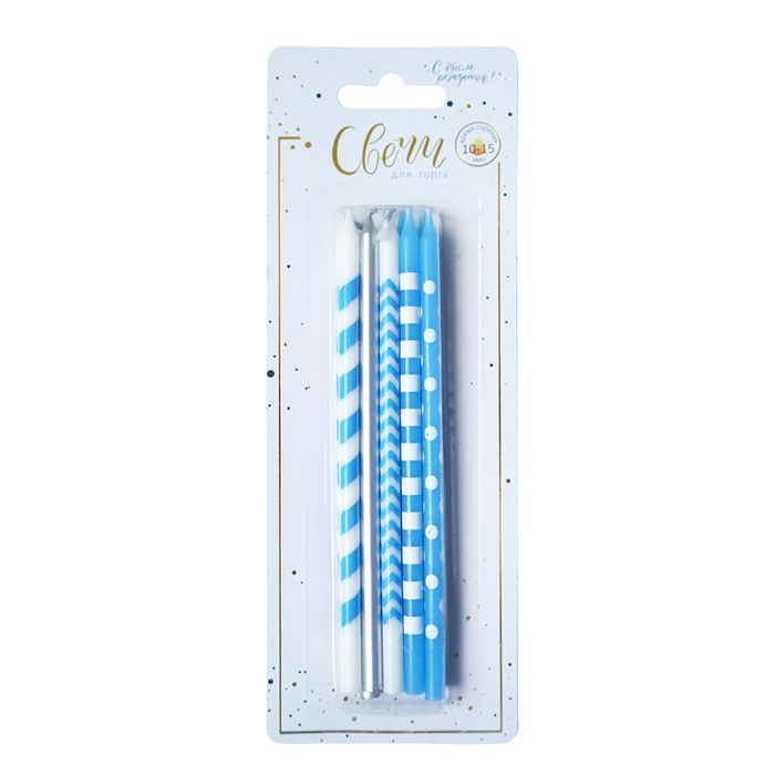 Свечи в торт — незаменимый атрибут для особенного праздника. Свечи тортовые классические "Микс" Голубой / Серебро (длинные свечи) идеальны для празднования дня рождения у именинника любого возраста. Размер и эстетический вид свечи удивит любого гостя. Свечи упакованы в праздничную фирменную подложку ВЕСЕЛУХА. Набор: 10 шт. Размер: 15 см.