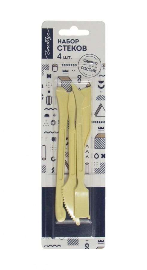 Набор стеков для лепки 01, качественный пластик. Стеки предназначены для проработки деталей, а также для создания и формирования фигур из пластилина или другой пластичной массы. В упаковке 4 шт. Упаковка — блистер, европодвес.