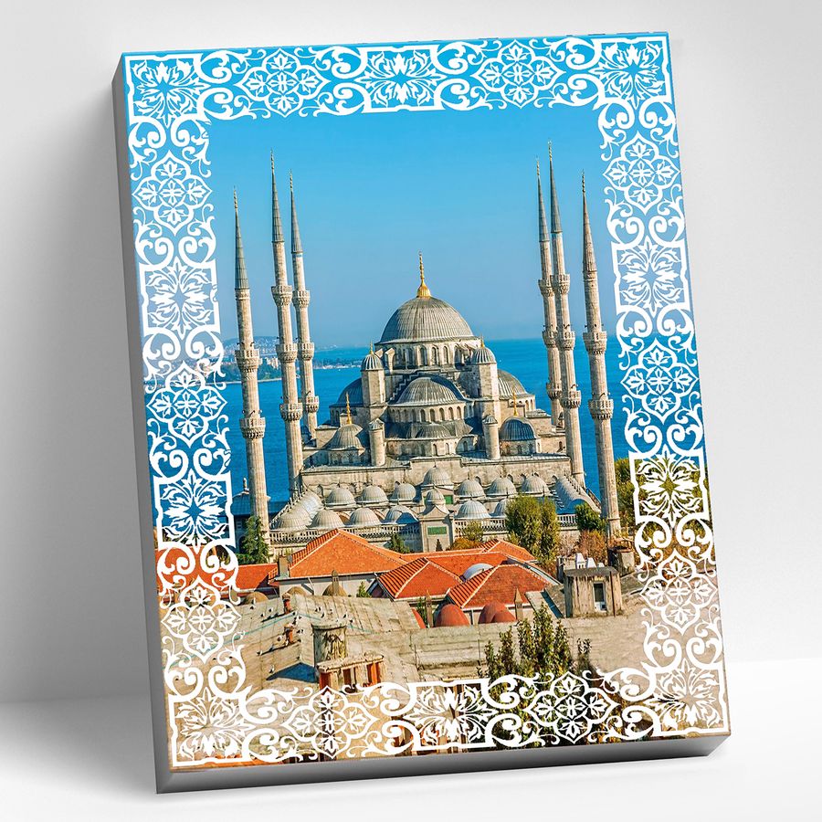 Картина по номерам 40х50 Голубая мечеть. Стамбул – это набор для творчества с помощью которого, используя краски и кисть, можно нарисовать потрясающую картину, даже не обладая художественными навыками. Количество цветов: 26 Уровень сложности: 3 (средний) Состав набора: холст из натурального хлопка на деревянном подрамнике (холст предварительно прогрунтован), 2 нейлоновые кисти разного размера, профессиональные акриловые краски (устойчивые к выцветанию), крепления для картины.