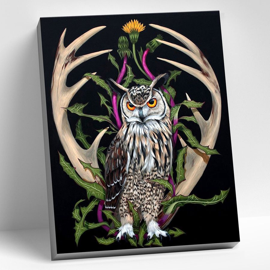 Картина по номерам 40х50 Тотемная птица Филин – это набор для творчества с помощью которого, используя краски и кисть, можно нарисовать потрясающую картину, даже не обладая художественными навыками. Количество красок: 22 Уровень сложности: 2 (легкий) Состав набора: холст из натурального хлопка на деревянном подрамнике ;холст предварительно прогрунтован, 2 нейлоновые кисти разного размера, профессиональные акриловые краски; устойчивые к выцветанию, крепления для картины.