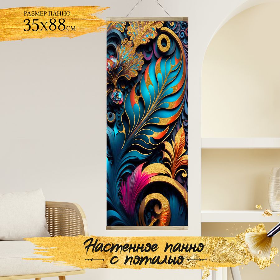 Картина по номерам 35х88 с поталью Панно – это настенная композиция, которая станет ярким акцентом для вашего интерьера. С помощью панно можно быстро преобразить любую комнату, не прибегая к перестановке. Благодаря тщательной детализации законченное панно выглядит очень эффектно. Количество красок: 23 Уровень сложности: 2 (лёгкий) Состав набора: подготовленный холст с деревянными рейками и шнуром, нейлоновые деревянные кисти разного размера, 2 шт., профессиональные акриловые краски, устойчивые к выцветанию, клей, лак, поталь.