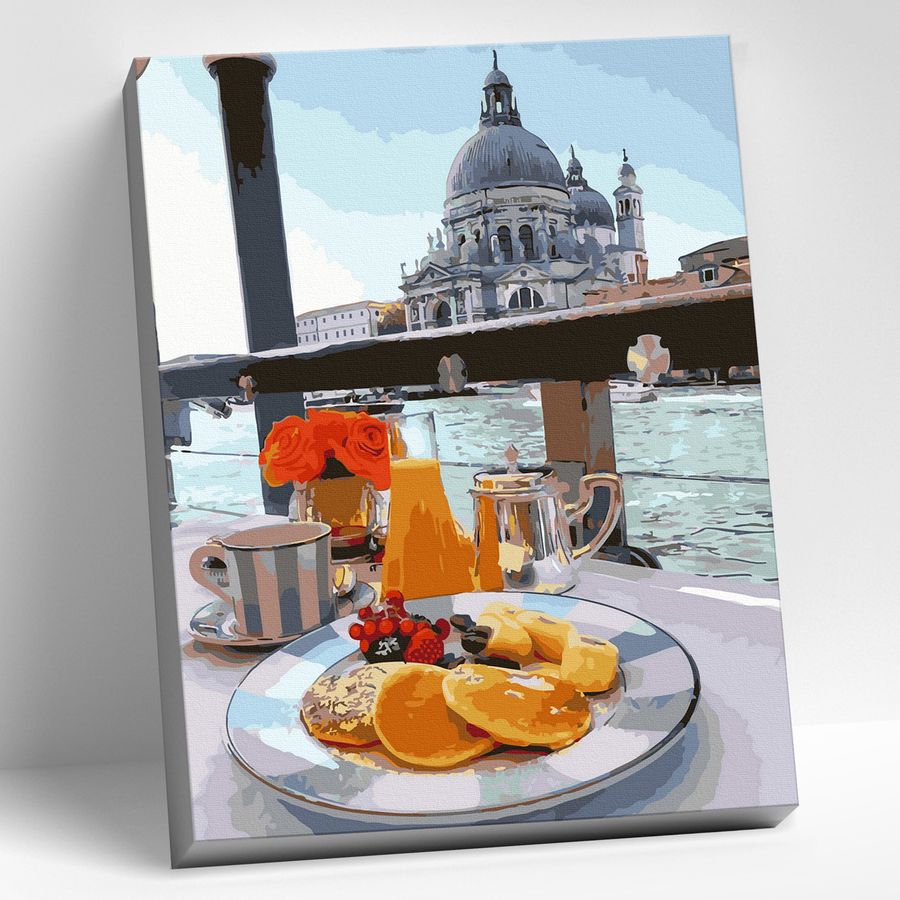 Традиционный итальянский завтрак не предполагает ни яичницы, ни бекона, ни даже привычного бутерброда. Тут не принято тратить много времени на приготовление утренней еды. Итальянцам больше нравится начинать свой день со свежей выпечки, вкус которой дополняют любимые напитки. Количество красок: 29 Уровень сложности: 4 (повышенный) Состав набора: холст из натурального хлопка на деревянном подрамнике (холст предварительно прогрунтован), 3 нейлоновые кисти разного размера, профессиональные акриловые краски (устойчивые к выцветанию), финишный лак, уровень, петли для картины, крепления для стены.