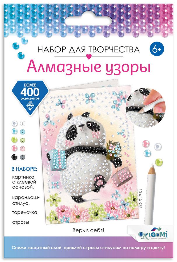 Открытка с уютной пандой в формате "укрась и подари" подарит радость и веселье самым близким! Более 500 страз в комплекте оживят красочную иллюстрацию ярким блеском. Творчество-антистресс поможет расслабиться и забыть о повседневных заботах. Процесс создания позволит улучшить мелкую моторику рук и станет интересным хобби для взрослых и детей. Уютный подарок и медитация 2в1!
