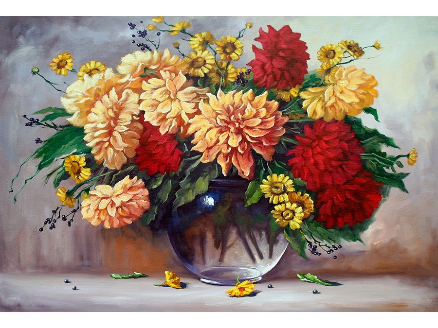 Мозаика алмазная 30х40 см Красочный букет хризантем