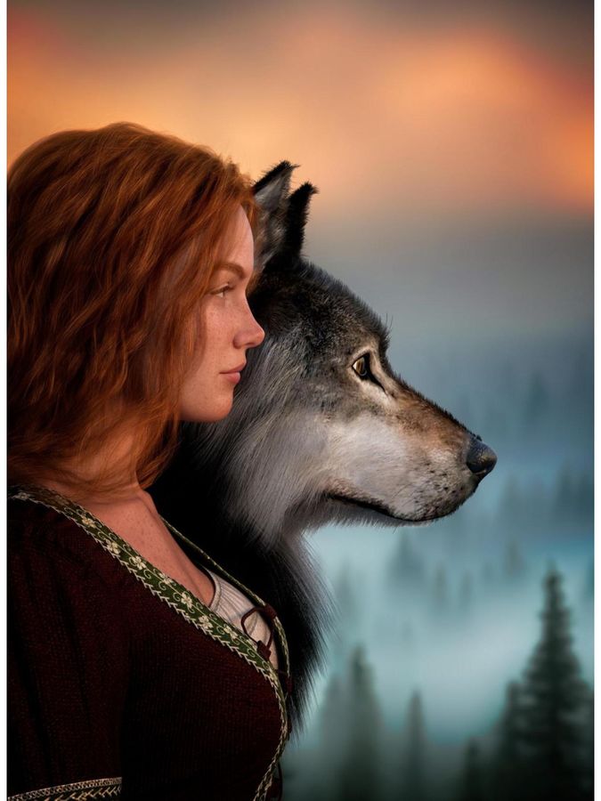 Мозаика алмазная 22х32см Рыжая девушка с волком