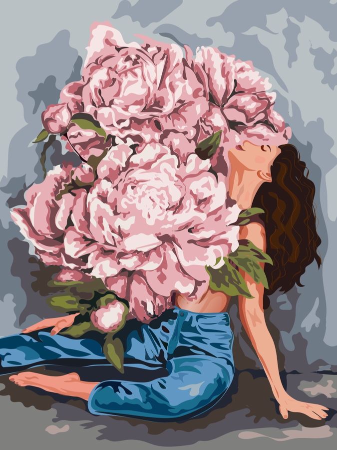 Мозаика алмазная 30х40см Девушка в пионах Блестящая