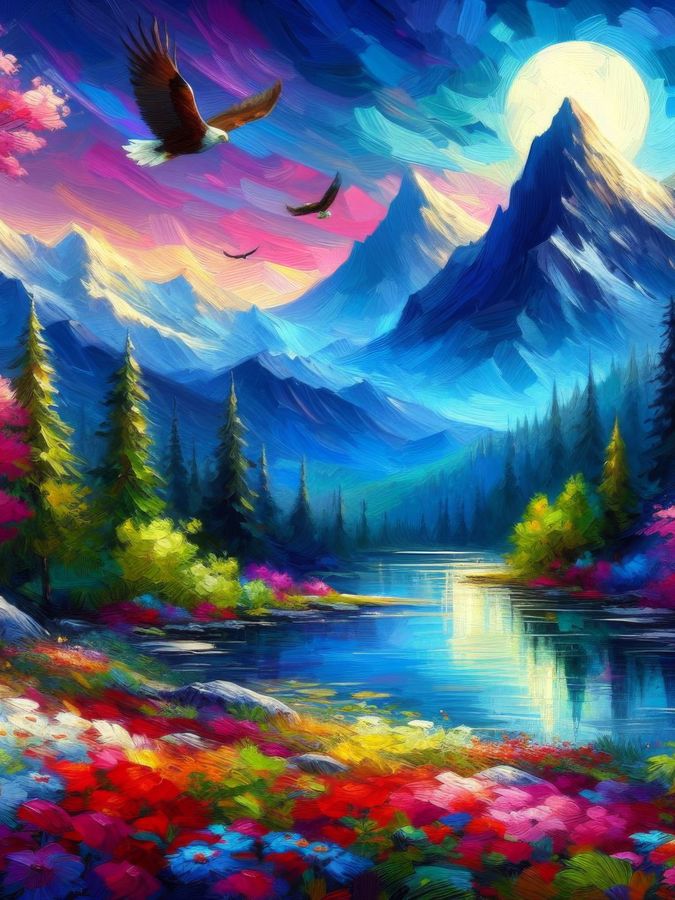 Мозаика алмазная 30х40см Яркий горный пейзаж