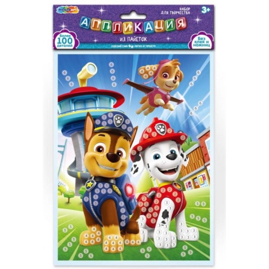 Набор для творчества - аппликация из пайеток «Щенячий патруль» ТМ «Мульти Арт» - отличный подарок для вашего ребёнка, который будет способствовать развитию его творческих способностей. Особенности и комплектация: - основа для аппликации - комплект разноцветных пайеток - более 100 деталей - без клея и ножниц С помощью этого набора юный художник сможет самостоятельно создать сверкающую аппликацию с изображением любимых персонажей. Готовую поделку можно подарить близким или использовать для украшения интерьера. Творческие занятия с набором ТМ «Мульти Арт» развивают: - внимание и усидчивость - творческое мышление - сенсорное и цветовое восприятие - моторику рук - фантазию и воображение Размер: 17 х 23 см. Материал: картон + пластмасса. Рекомендовано детям от 3-х лет.