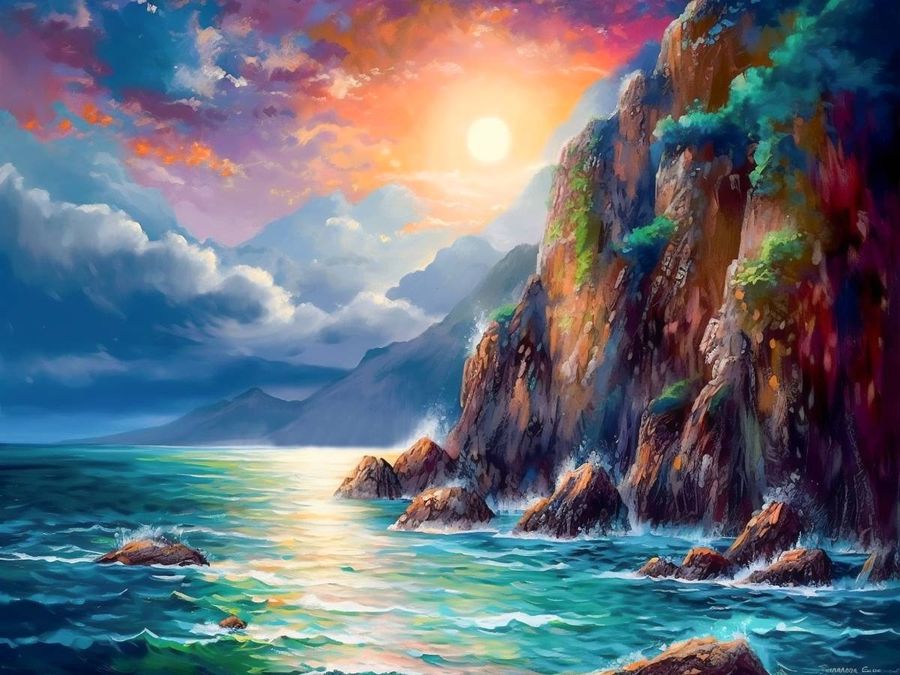 Мозаика алмазная 30х40см Скалы в лунном свете