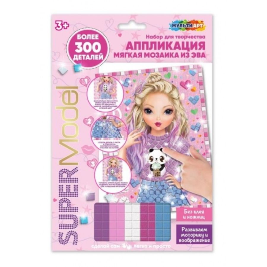 Набор для творчества - мягкая мозаика из ЭВА «СуперМодель» ТМ «Мульти Арт» - отличный подарок для ребёнка, который будет способствовать развитию его творческих способностей. Комплектация и особенности: - в составе всё необходимое для поделки - картонная основа для аппликации - более 300 деталей - объёмные самоклеящиеся элементы 5 цветов - без клея и ножниц - инструкция на обороте упаковки С помощью красочной основы и разноцветных деталей из мягкого материала маленький художник сможет самостоятельно создать аппликацию с изображением очаровательной девочки-модели. Готовая поделка станет отличным вариантом для подарка близким или для украшения детской комнаты. Занятия с наборами для творчества ТМ «Мульти Арт» развивают: - внимание и усидчивость - творческое мышление - сенсорное и цветовое восприятие - моторику рук - воображение Размер основы: 17 х 23 см. Материал: картон + ЭВА. Рекомендовано детям от 3-х лет.