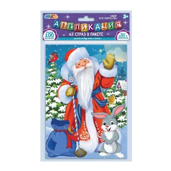 Набор для творчества - аппликация из страз «Новый год» ТМ «Мульти Арт» - отличный подарок для ребёнка, который будет способствовать развитию его творческих способностей. Комплектация и особенности: - пронумерованная картонная основа для аппликации - более 100 деталей - комплект разноцветных самоклеящихся страз - без клея и ножниц - безопасно для детей С помощью красочной основы и разноцветных сверкающих страз маленькая художница сможет самостоятельно создать блестящую картинку с изображением главного новогоднего персонажа, Деда Мороза, и милого зайки на зимнем фоне. Готовую поделку можно подарить близким или использовать для украшения интерьера. Занятия с наборами для творчества ТМ «Мульти Арт» развивают: - внимание и усидчивость - творческое мышление - сенсорное и цветовое восприятие - моторику рук - воображение Размер основы: 15 х 21 см. Материал: картон + пластмасса. Рекомендовано детям от 3-х лет.