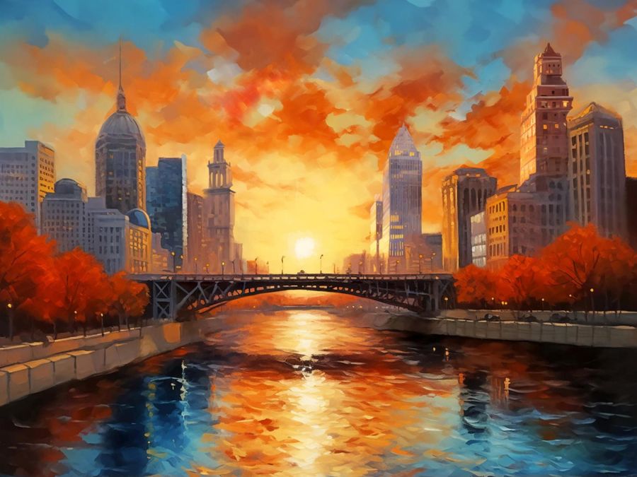 Мозаика алмазная 30х40см Закат над городом