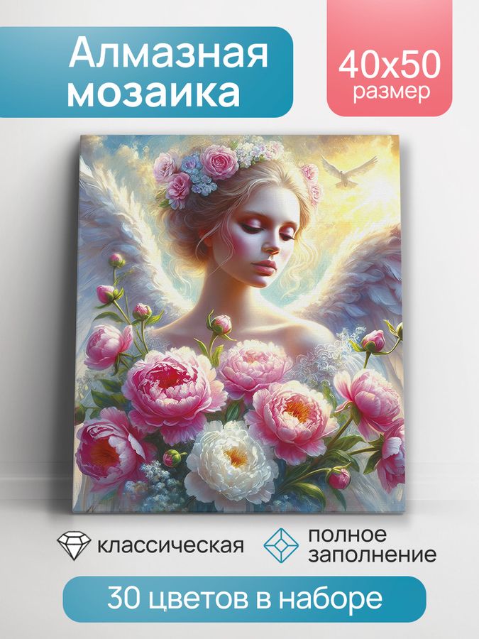 Мозаика алмазная 40х50см Ангел с цветами