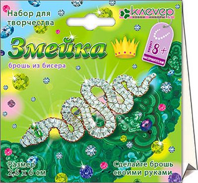 По китайской мифологии Змея - символ мудрости, осторожности и наблюдательности. Именно эти качества помогают людям добиться поставленных целей и делают год успешным. Главное - выбрать удобный момент для решения задач, отличная интуиция Змеи убережёт от множества ошибок. Таинственность, непредсказуемость и изящество змеи издавна привлекали внимание ювелиров. Невероятная способность змеи изгибать своё тело и сворачивать его кольцами нашла отражение во множестве ювелирных изделий - ожерельях, браслетах, кольцах и брошах. Набор "Змейка" предлагает создать из бисера и проволоки серебристую брошь-змейку с красивыми изгибами и "изумрудными" глазками. Такое украшение будет отлично смотреться на лацкане пиджака или на берете, а если приподнести его в подарок, станет талисманом, приносящим удачу! Комплектация: бисер цветной, проволока для бисероплетения, булавка английская, инструкция с подробными схемами плетения. Для детей от 8 лет. Размер: 2,5х6 см. Сделано в России.