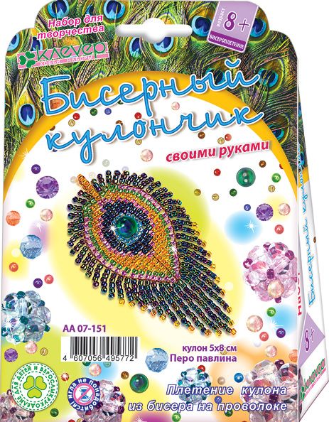 Перо павлина - роскошный кулон, переливающийся всеми цветами радуги. Эффектное украшение и отличный подарок, перо павлина принесет счастье и успех в Ваш дом. В набор "Перо павлина" входят все необходимые материалы для изготовления кулона - разноцветный бисер и бусина с голографическим эффектом, проволока для бисероплетения и пошаговая инструкция. Размер готового изделия: 50x80 мм. Возраст: для детей старше 8 лет Комплектация: бусина, разноцветный бисер, проволока, пошаговая инструкция Упаковка: картонный пенал с европодвесом. Сделано в России.