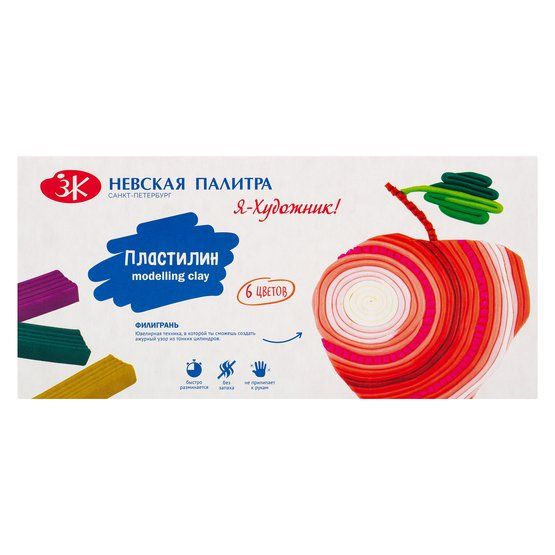 Мягкая текстура легко разминается в руках. Пластилин легко очищается с рабочих поверхностей, безопасен при длительном контакте с кожей ребенка. В наборе есть стек для моделирования. Я - Художник! Набор пластилина детского классического со стеком, 120 г, 6 цветов