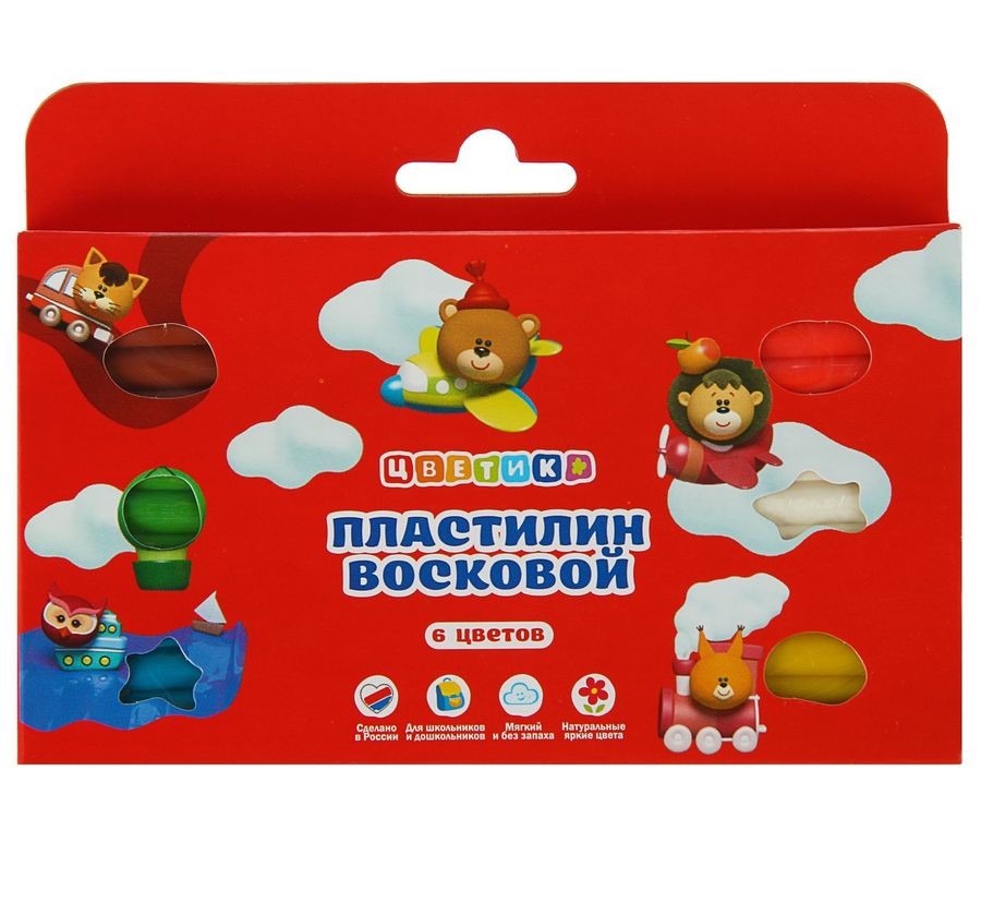 Набор пластилина воскового детского со стеком. Благодаря особой мягкости восковой пластилин поможет самым маленьким детям освоить различные техники лепки и моделирования. Изготавливается с добавлением природного воска. Имеет яркие и сочные цвета, легко принимает нужную форму, не пачкает руки и не прилипает к рабочей поверхности. Для удобства использования набор укомплектован пластмассовым стеком. Перед применением смочить руки теплой водой. После занятий лепкой протереть руки тканью или бумагой, затем вымыть их теплой водой с мылом.