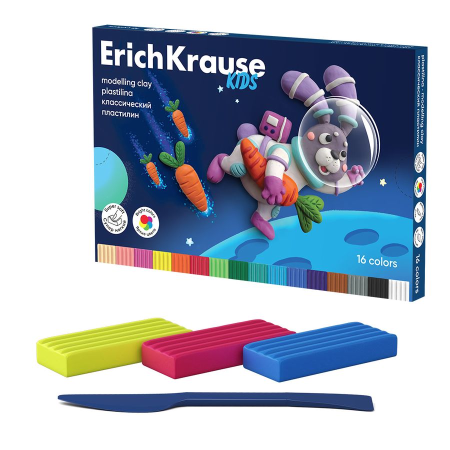 Классический пластилин ErichKrause повышенной мягкости для детей 3-6 лет обладает высокой эластичностью и гибкостью. Пластилин идеально подходит для творческих задач и развития мелкой моторики, хорошо сохраняет свою форму и не застывает на воздухе, а также не прилипает к рукам и не пачкает одежду. Палитра содержит яркие сочные цвета, которые отлично смешиваются между собой , создавая новые оттенки. Удлиненная форма бруска позволяет легко отделить необходимое количество пластилина для поделки. Каждый брусок имеет индивидуальную упаковку «flow-pack», которая надежно сохраняет товарный вид и пластичные свойства продукта. Обновленная эргономичная коробка-пенал с клапанами и поддон без коррекса удобна в использовании. В комплекте для декорирования и моделирования прилагается стек.