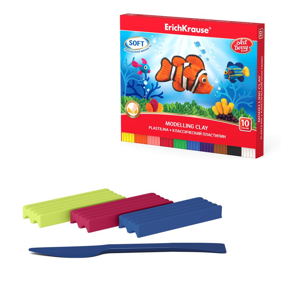 Классический пластилин ArtBerry® повышенной мягкости для детей 3-6 лет обладает высокой эластичностью и гибкостью. Пластилин идеально подходит для творческих задач и развития мелкой моторики, хорошо сохраняет свою форму и не застывает на воздухе, а также не прилипает к рукам и не пачкает одежду. Палитра содержит яркие сочные цвета, которые отлично смешиваются между собой , создавая новые оттенки. Удлиненная форма бруска позволяет легко отделить необходимое количество пластилина для поделки. Каждый брусок имеет индивидуальную упаковку «flow-pack», которая надежно сохраняет товарный вид и пластичные свойства продукта. Обновленная эргономичная коробка-пенал с клапанами и поддон без коррекса удобна в использовании. В комплекте для декорирования и моделирования прилагается стек.
