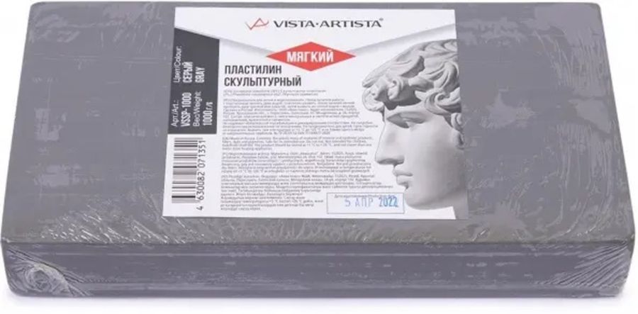 Пластилин скульптурный 1000г серый мягкий Studio №5 VISTA-ARTISTA VSSP-1000