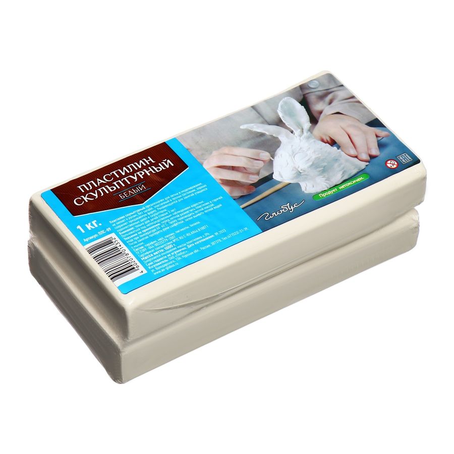 Пластилин скульптурный 1000г белый твердый Глобус ПЛС-09