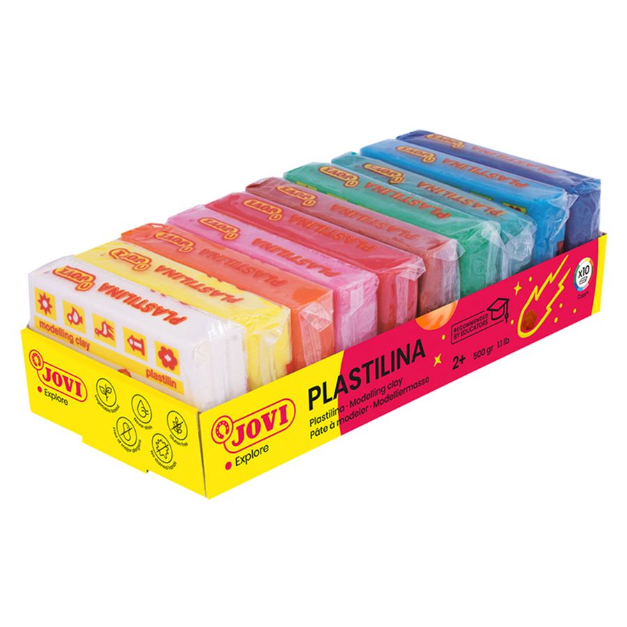 Легендарный пластилин JOVI. • на растительной основе • безопасен• гипоаллергенен • без продуктов нефтепереработки • не содержит глютен Не пачкает руки, снимается с любой поверхности без усилий, не оставляя пятен. Очень пластичен, не высыхает, держит форму, не крошится, фигурки не опадают со временем, цвета прекрасно смешиваются между собой. Идеален для начала обучения лепке и для уроков в школе и творческих студиях. Используется для техники "Рисование пластилином" и пластилиновой мультипликации. Набор пластилина из десяти цветов (белый, желтый, оранжевый, розовый, красный, малиновый, голубой, синий, зеленый, темно-зеленый) по 50 грамм в картонной коробке. Страна производства Испания.