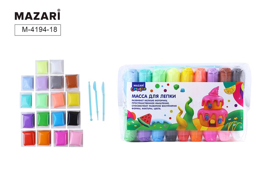 Пластилин воздушный 18цв 234г 3 стека MAZARI M-4194-18