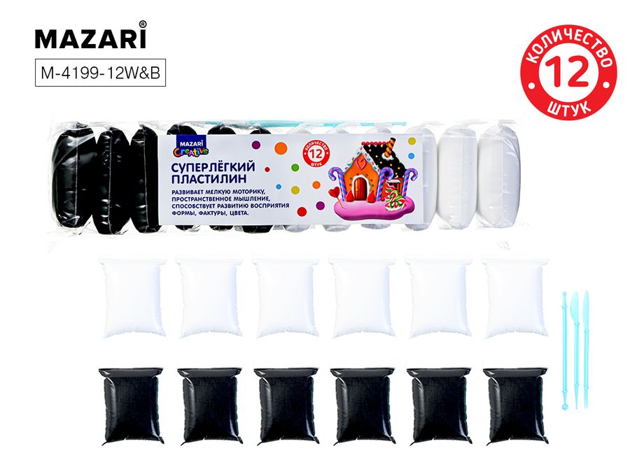 Пластилин воздушный 2цв 12шт 156г 3 стека MAZARI M-4199-12W&B