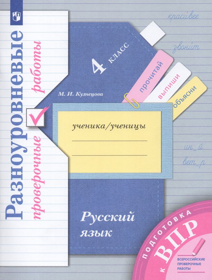 Разноуровневые проверочные работы по русскому языку для учащихся четвертого класса предназначены для подготовки к итоговой проверке уровня освоения обучающимися основной образовательной программы начального общего образования. Выполнение работ будет способствовать обобщению знаний ученика по ведущим темам курса, развитию умения самостоятельно справляться с заданиями базового и повышенного уровней сложности. Работы можно использовать и для проведения итогового контроля на уровне образовательной организации. Работы № 1-3 предназначены для оценки освоения четвероклассниками обязательных планируемых результатов по русскому языку на базовом уровне. Работа № 4 содержит задания базового и повышенного уровня для итоговой оценки индивидуальных достижений учащихся. Работа № 5 проводится в самом конце учебного года и выявляет четвероклассников с выраженными способностями к изучению русского языка. Содержание заданий соответствует требованиям Федерального государственного образовательного стандарта начального общего образования и Примерной основной образовательной программы начального общего образования, поэтому тетрадь может быть использована при работе по любому УМК «Русский язык».