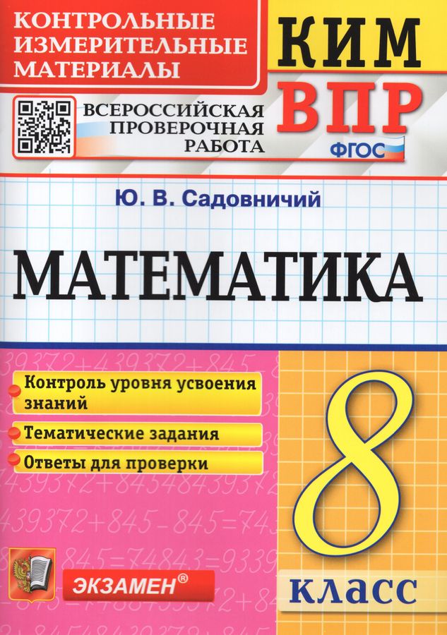 Данное пособие полностью соответствует федеральному государственному образовательному стандарту (второго поколения). В данном пособии представлены контрольные измерительные материалы по математике для учащихся 8-го класса. Тематика предлагаемых тестов охватывает все темы 8-го класса, соответствует программе общеобразовательных организаций по математике и аналогичным материалам ВПР. Назначение пособия - от-работка практических навыков учащихся при подготовке к Всероссийской проверочной работе. В конце пособия предложены рекомендации по оцениванию работы и ответы ко всем заданиям.