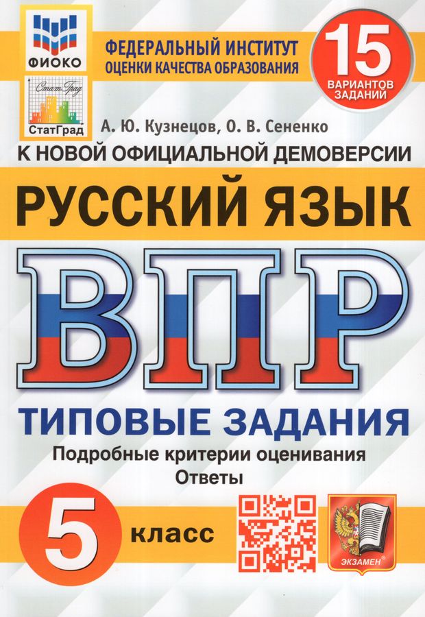ВПР. Русский язык. 5 класс. Типовые задания. 15 вариантов 2024 | Сененко О.В., Кузнецов А.Ю.