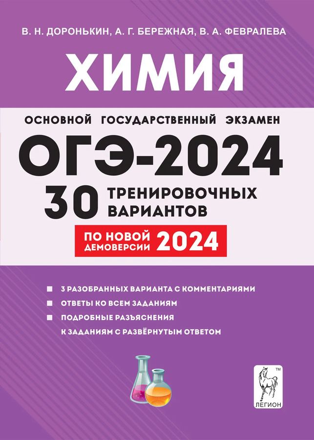 Учебное пособие предназначено для фундаментальной подготовки к ОГЭ по химии. Оно способствует систематизации имеющихся у выпускников знаний и формированию у них устойчивых навыков выполнения заданий в формате основного государственного экзамена. Книга содержит: 30 новых тренировочных вариантов, составленных по официальным проектам спецификации и демоверсии ОГЭ 2024 года, опубликованным 24.08.2023 г. на сайте ФИПИ; 3 варианта с образцами решений и комментариями к каждому типу заданий; ответы ко всем тренировочным вариантам. Пособие адресовано девятиклассникам, готовящимся к ОГЭ по химии, и учителям. Книга будет полезна учителям для выявления пробелов в знаниях учеников, составления тематических работ и проведения текущего контроля.