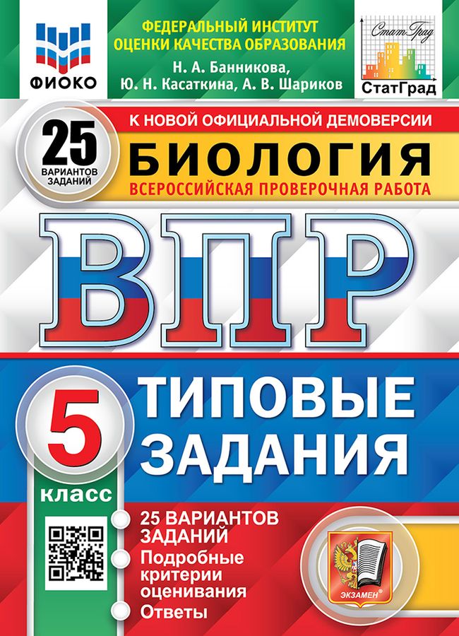 Данное пособие полностью соответствует федеральному государственному образовательному стандарту. Книга содержит 25 вариантов типовых заданий Всероссийской проверочной работы (ВПР) по биологии для учащихся 5-х классов. Сборник предназначен учащимся 5-х классов, учителям и методистам, использующим типовые задания для подготовки к Всероссийской проверочной работе по биологии.