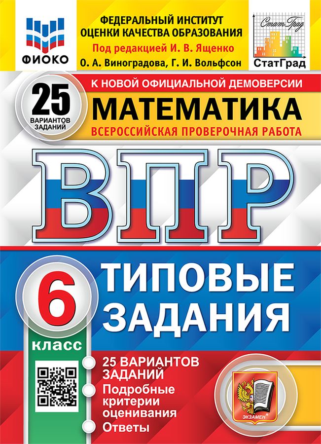 Данное пособие полностью соответствует федеральному государственному образовательному стандарту. Книга содержит 25 вариантов типовых заданий Всероссийской проверочной работы (ВПР) по математике для учащихся 6-х классов. Сборник предназначен учащимся 6-х классов, учителям и методистам, использующим типовые задания для подготовки к Всероссийской проверочной работе по математике. Приказом №699 Министерства образования и науки Российской Федерации учебные пособия издательства "Экзамен" допущены к использованию в общеобразовательных организациях.