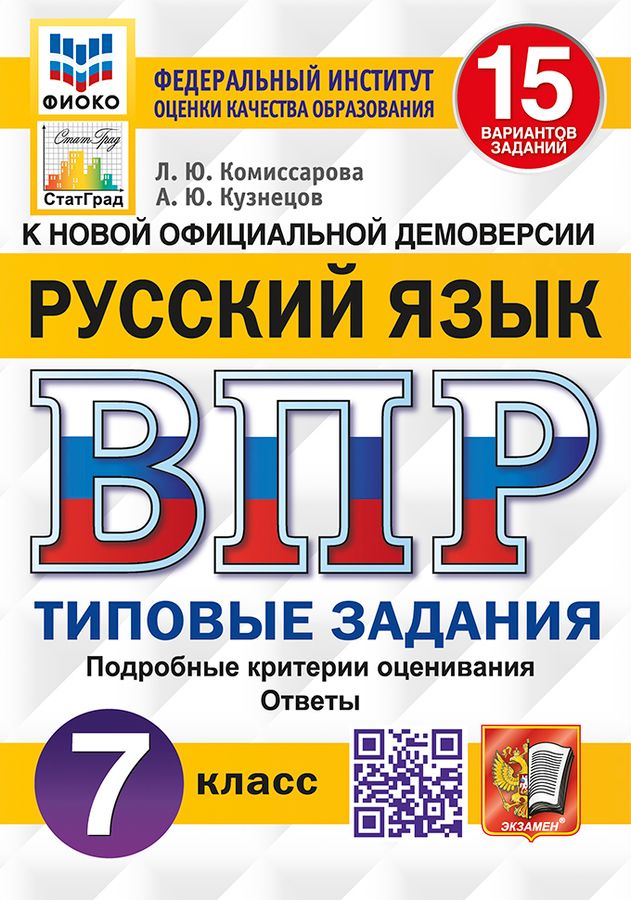 Данное пособие полностью соответствует федеральному государственному образовательному стандарту (второго поколения). Книга содержит 15 вариантов типовых заданий Всероссийской проверочной работы (ВПР) по русскому языку для учащихся 7-х классов. Сборник предназначен учащимся 7-х классов, учителям и методистам, использующим типовые задания для подготовки к Всероссийской проверочной работе по русскому языку.