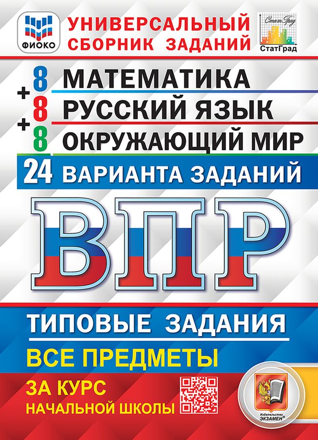 Данное пособие полностью соответствует федеральному государственному образовательному стандарту (второго поколения) для начальной школы. Книга содержит 24 варианта типовых заданий Всероссийской проверочной работы (ВПР) за курс начальной школы по трём предметам (по 8 вариантов). Сборник предназначен учащимся 4-х классов начальной школы, учителям и методистам, использующим типовые задания для подготовки к Всероссийской проверочной работе за курс начальной школы. Приказом №699 Министерства образования и науки РФ учебные пособия издательства "Экзамен" допущены к использованию в общеобразовательных организациях.