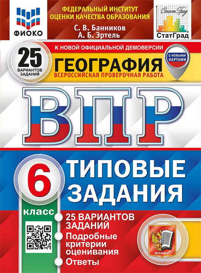 Данное пособие полностью соответствует федеральному государственному образовательному стандарту. Книга содержит 25 вариантов типовых заданий Всероссийской проверочной работы (ВПР) по географии для учащихся 6-х классов. Сборник предназначен учащимся 6-х классов, учителям и методистам, использующим типовые задания для подготовки к Всероссийской проверочной работе по географии. Приказом №699 Министерства образования и науки Российской Федерации учебные пособия издательства "Экзамен" допущены к использованию в общеобразовательных организациях.