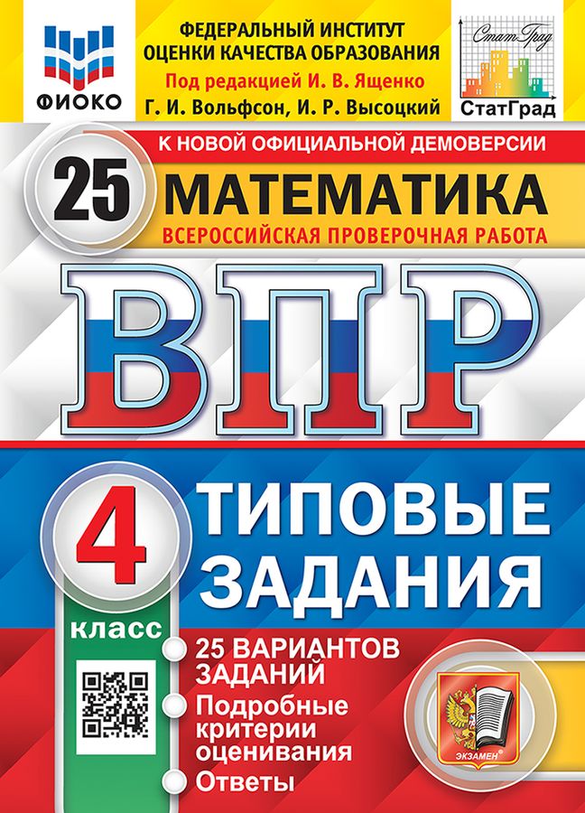 Данное пособие полностью соответствует федеральному государственному образовательному стандарту (второго поколения) для начальной школы. Книга содержит 25 вариантов типовых заданий Всероссийской проверочной работы (ВПР) за курс начальной школы. Сборник предназначен учащимся 4-х классов начальной школы, учителям и методистам, использующим типовые задания для подготовки к Всероссийской проверочной работе за курс начальной школы. Приказом №699 Министерства образования и науки Российской Федерации учебные пособия издательства "Экзамен" допущены к использованию в общеобразовательных организациях.