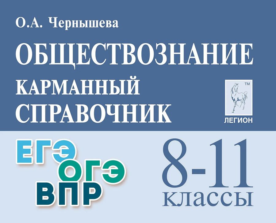 Справочник содержит материал, который поможет ученику при подготовке к ОГЭ и ЕГЭ по обществознанию, а также к другим формам контроля и аттестации в 8–11-х классах. В пособии представлены основные теоретические сведения по всем разделам предмета («Человек», «Общество», «Духовная сфера», «Экономика», «Политика», «Социальная сфера», «Право»).