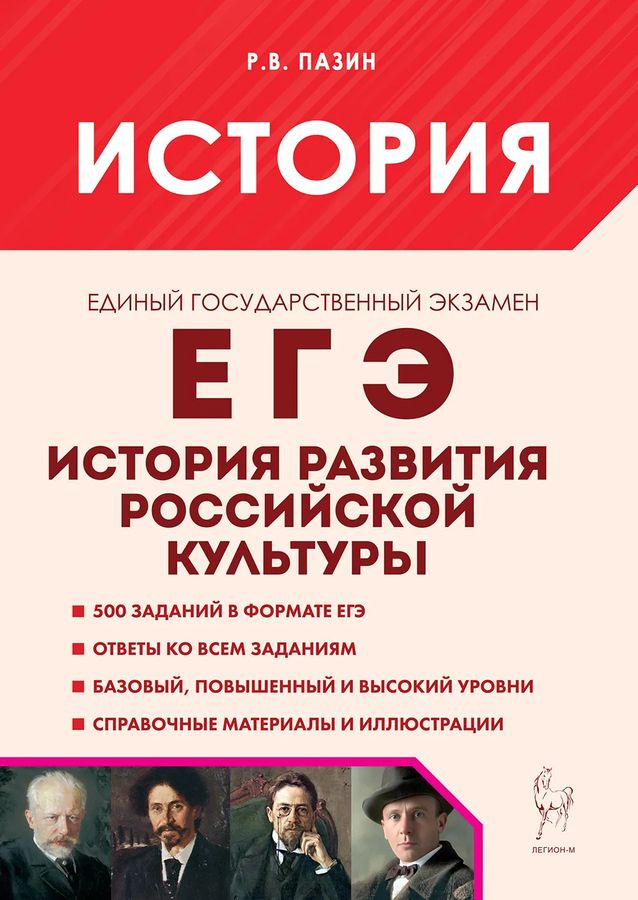 Пособие предназначено для подготовки к ЕГЭ по истории. В пособии отражены все сферы культурной жизни России и этапы её развития. Материал книги охватывает весь курс — с древних времён до современности. В нём учтены изменения в спецификации ЕГЭ. Книга содержит: систематизированную информацию об основных этапах развития русской литературы, архитектуры, изобразительного искусства, музыки, образования, науки; иллюстративный материал; около 500 заданий разных типов (задания с выбором ответа, на определение хронологической последовательности, на установление соответствий; задания, связанные с поиском информации в историческом источнике, и т. д.); ответы ко всем заданиям. Ученику книга поможет подготовиться к выполнению заданий по истории российской культуры и успешно выполнить их на ЕГЭ. Учителю пособие может быть полезно при изучении и закреплении пройденного материала, а также для формирования предметных, метапредметных и личностных компетенций у школьников.