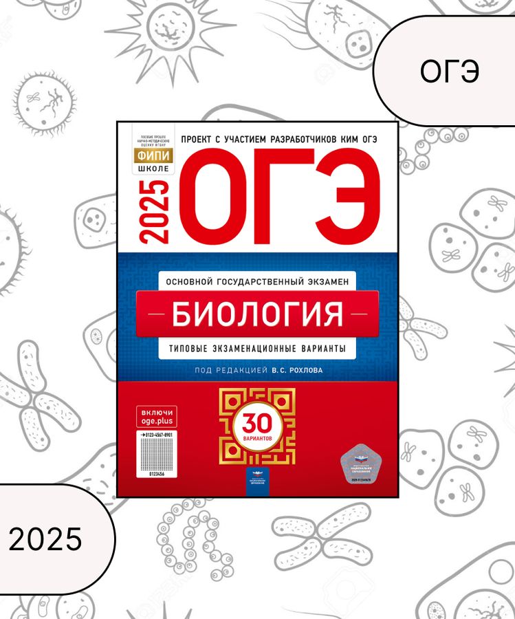 Серия подготовлена разработчиками контрольных измерительных материалов (КИМ) основного государственного экзамена. В сборнике представлены: • 30 типовых экзаменационных вариантов, составленных в соответствии с проектом демоверсии КИМ ОГЭ по биологии 2025 года; • инструкция по выполнению экзаменационной работы; • ответы ко всем заданиям; • критерии оценивания. Выполнение заданий типовых экзаменационных вариантов предоставляет обучающимся возможность самостоятельно подготовиться к государственной итоговой аттестации в 9-м классе в форме ОГЭ, а также объективно оценить уровень своей подготовки к экзамену. Учителя могут использовать типовые экзаменационные варианты для организации контроля результатов освоения школьниками образовательных программ основного общего образования и интенсивной подготовки обучающихся к ОГЭ.