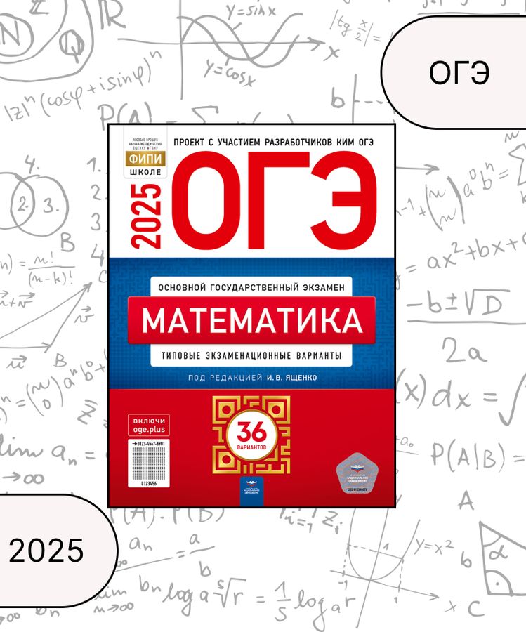 "Серия подготовлена разработчиками контрольных измерительных материалов (КИМ) основного государственного экзамена. В сборнике представлены: • 36 типовых экзаменационных вариантов, составленных в соответствии с проектом демоверсии КИМ ОГЭ по математике 2025 года; • инструкция по выполнению работы; • ответы ко всем заданиям; • решения и критерии оценивания заданий части 2. Выполнение заданий типовых экзаменационных вариантов предоставляет обучающимся возможность самостоятельно подготовиться к государственной итоговой аттестации в 9-м классе, а также объективно оценить уровень своей подготовки. Учителя могут использовать типовые экзаменационные варианты для организации контроля результатов освоения школьниками образовательных программ основного общего образования и интенсивной подготовки обучающихся к ОГЭ."